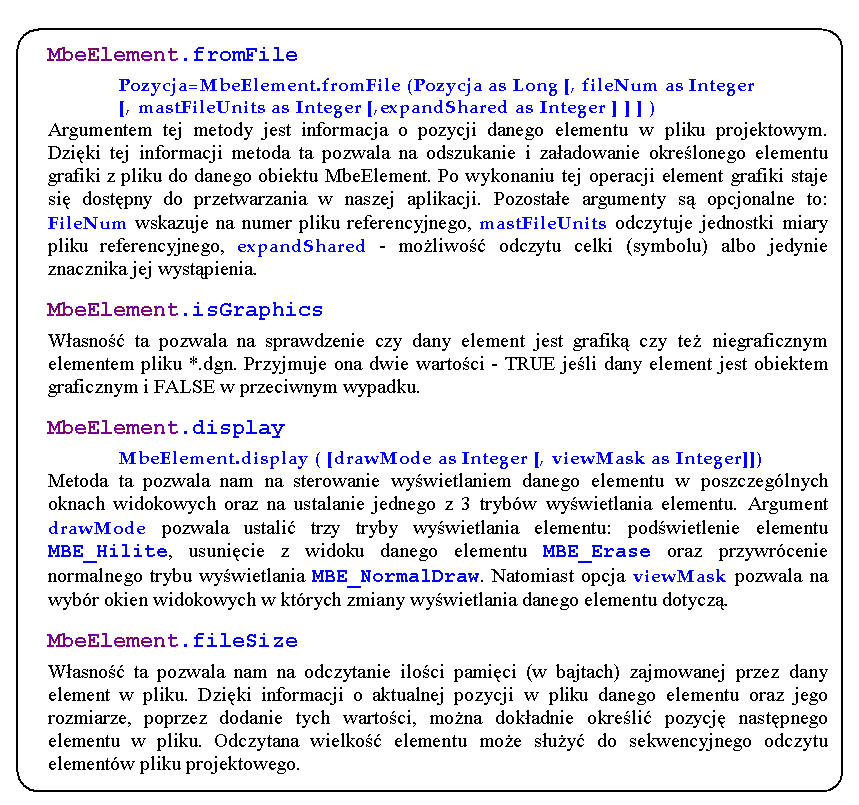 Własności obiektu MbeElement opisane w 3 odcinku