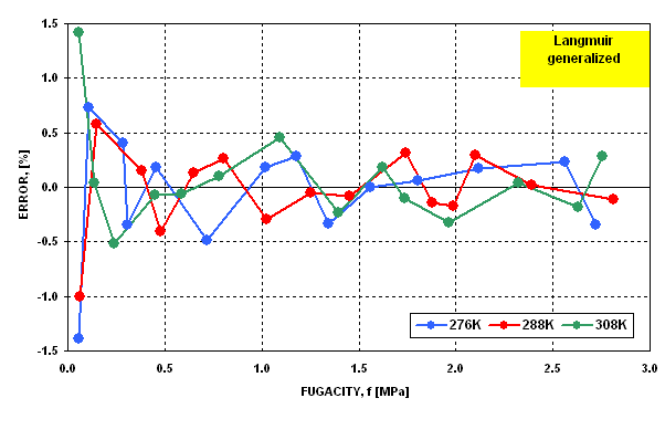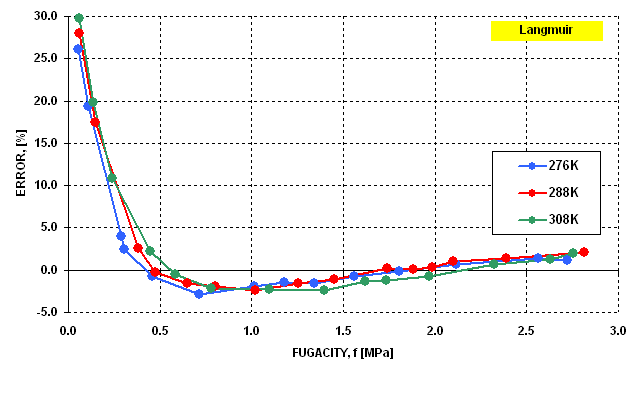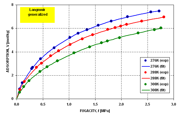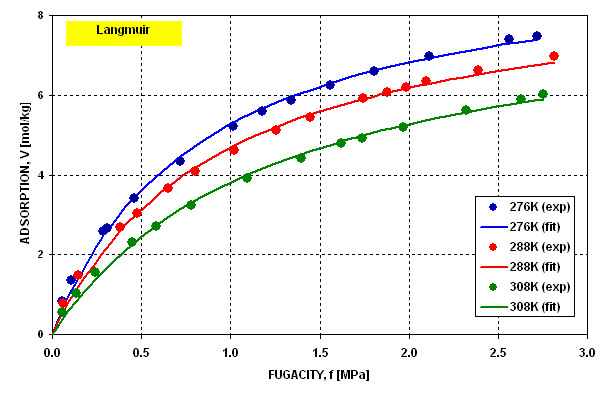 by classical Langmuir equation in the entire pressure and temperature ranges