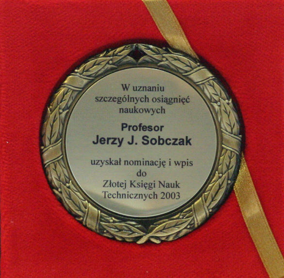 - nominacja i wpis do ogólnopolskiej Złotej Księgi Nauk Technicznych – 2003 certyfikat