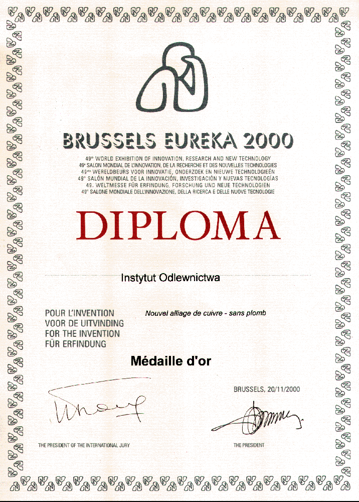 - Złoty Medal na 49 Światowym Salonie BRUSSELS EUREKA w Brukseli – 2000; list gratulacyjny od Prezesa Rady Ministrów RP – 2000; list