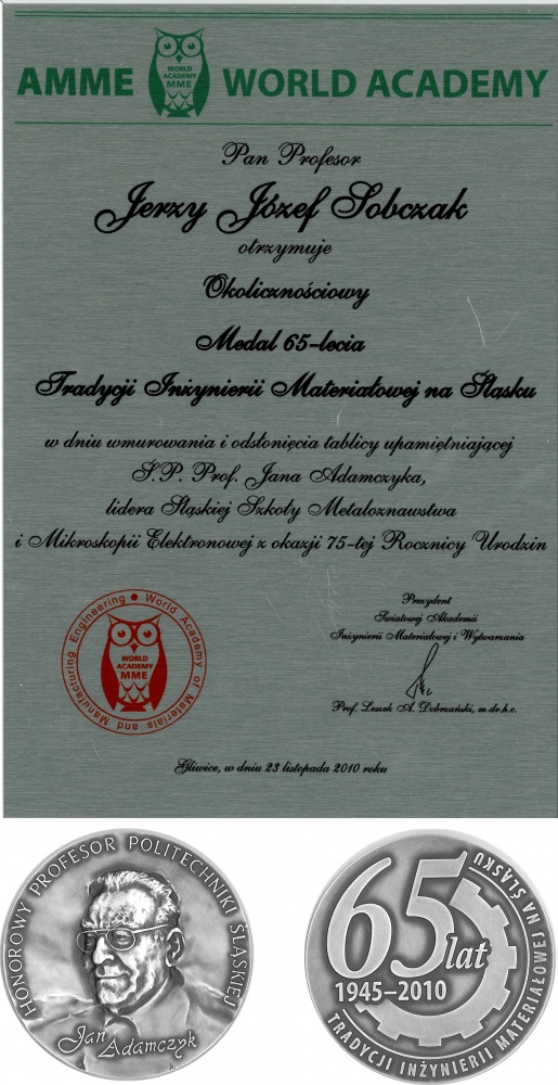 - Medal im. Prof. Jana Adamczyka 65-lecia Tradycji Inżynierii Materiałowej na Śląsku