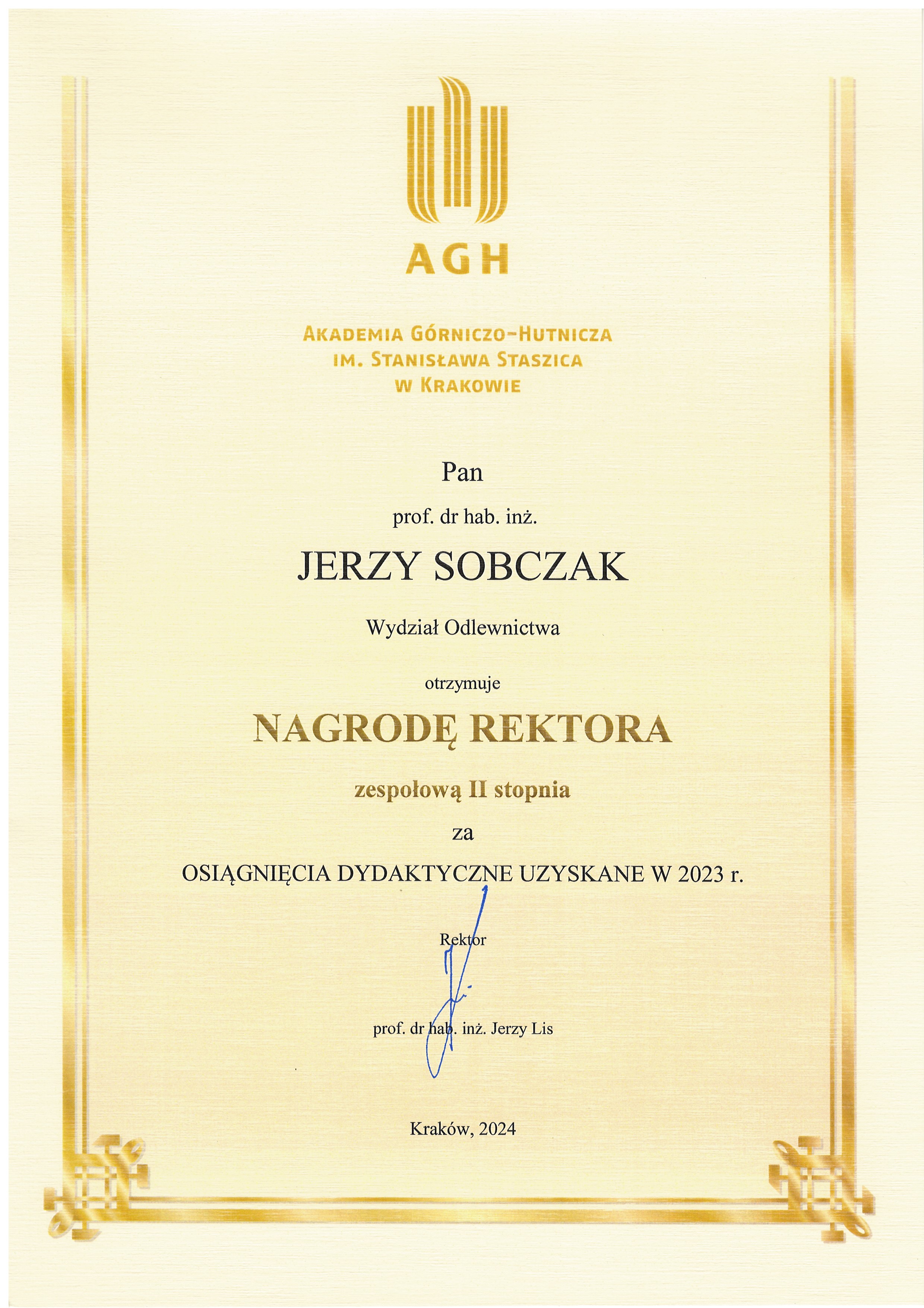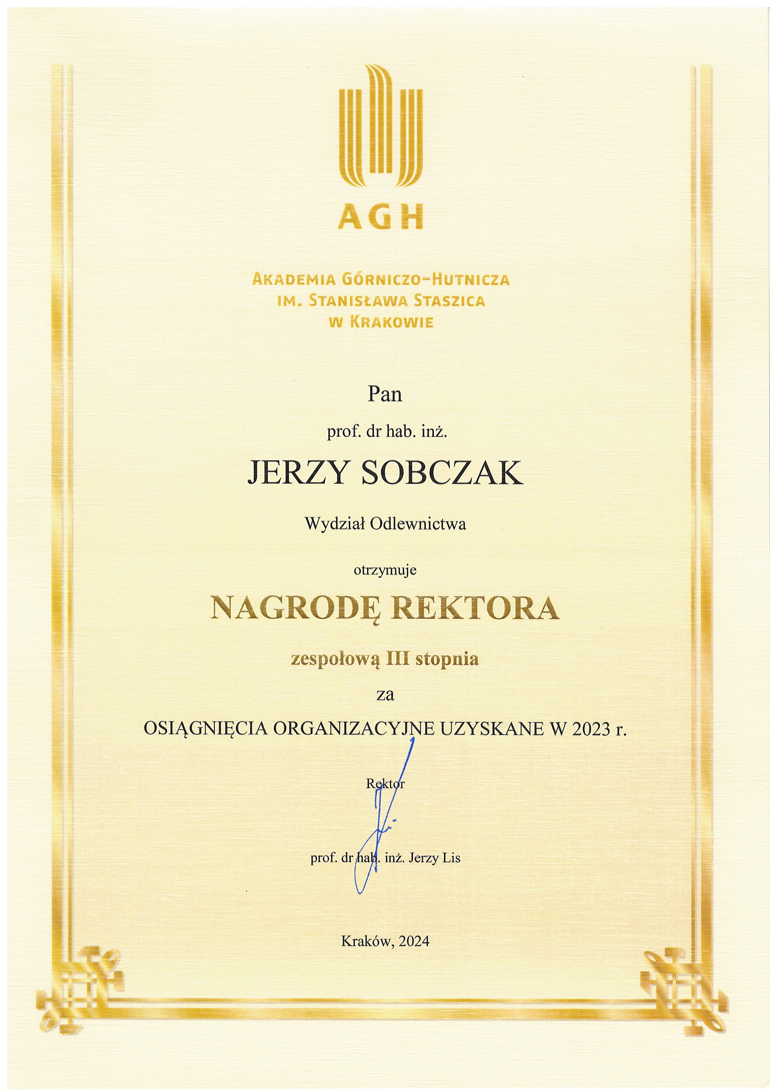 - Puchar NOT TECHNICUS 2024 za najlepszy poradnik techniczny "Odlewnictwo Współczesne. Poradnik Odlewnika - Technologia i Organizacja, T. II